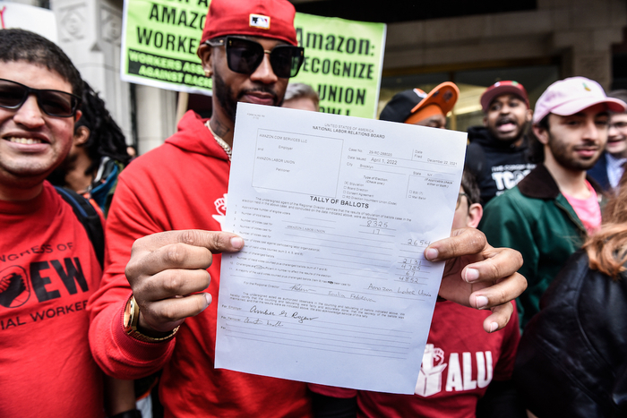在美国后里根时代令人沮丧的劳工运动历史上,很少有类似的事情发生,美国亚马逊(Amazon)的仓库工人在历史上第一次赢得了该公司对工会的认可。在美国国家劳资关系委员会(NLRB)的监督下,在斯塔顿岛的物流中心JFK8,共计8325名选民的投票中,其中2654人赞成加入亚马逊工会(ALU), 2131人反对。考虑到工会的领先优势,67张受到相关方质疑的选票和11张作废的选票将不会起到决定性作用。