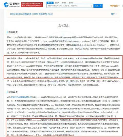 近日,深圳苏泊尚眼镜有限公司与肖战网络侵权责任纠纷二审文书公开。