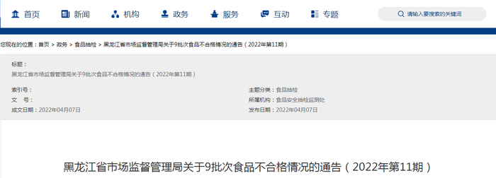 黑龙江省市场监督管理局特别提示消费者,在购买到或在市场上发现不合格食品,请拨打当地12315投诉举报电话进行投诉或举报。