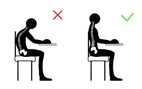 正确的坐姿:屁股坐满椅子,腰贴靠背,眼睛平视电脑屏幕。