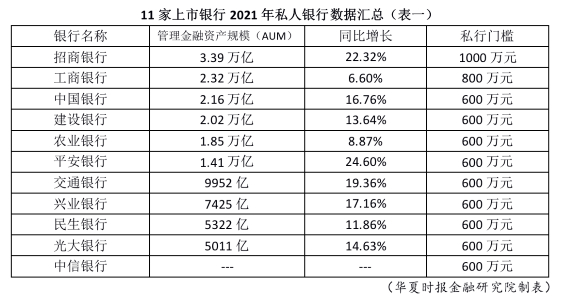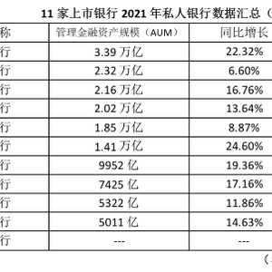 从近期上市银行公布的2021年财报来看,截至去年末,多家银行的私人银行资产管理规模(AUM)、客户数量均较2020年末增长超过10%。