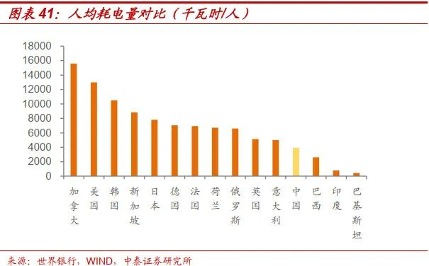 但从人均来看,中国人均耗电量为3905千瓦时,仅为第一名加拿大的四分之一,低于美国、韩国、新加坡等主要发达国家,高于巴西、印度、巴基斯坦等国。