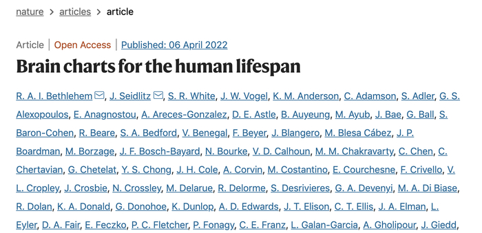 Seidlitz以及剑桥大学自闭症研究中心的Richard Bethlehem博士为该论文的共同通讯作者。然而值得一提的是,这是一个跨越六大洲的研究项目的成果,汇集了可能是有史以来最大的核磁共振(MRI)数据集,这些数据来自全球100多项不同研究的123984次核磁共振扫描,核磁共振参与者达到101457人。