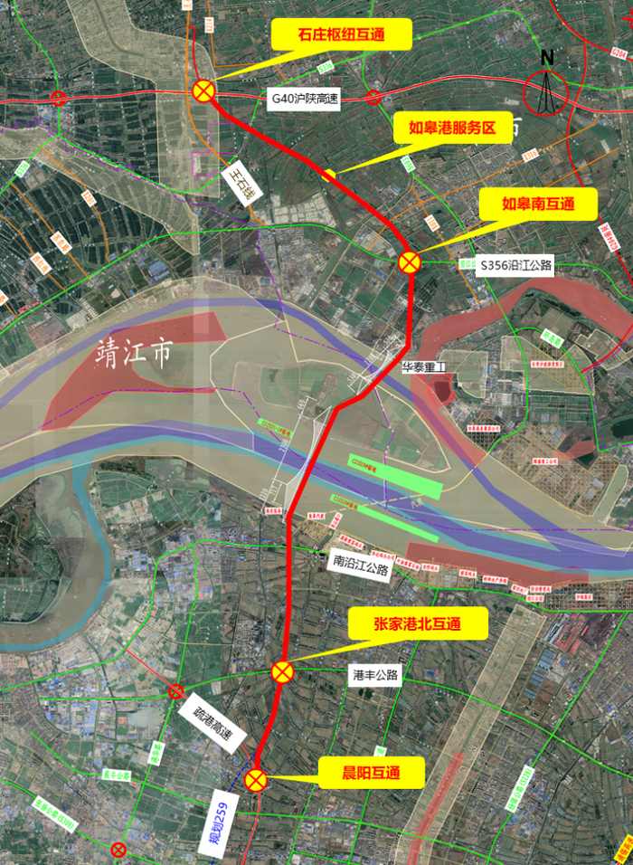 项目概况:江阴靖江长江隧道南、北接线工程是江阴靖江长江隧道的重要组成部分。南接线工程起于江阴芙蓉大道,顺接江阴靖江长江隧道,止于与沪武高速交叉处,衔接徐霞客大道,全长11.4公里,全线采用六车道高速公路标准建设,设计速度100公里/小时。项目全线采用桥梁形式,桥梁标准宽度为33.1米。全线共设置互通2处,分别为南闸互通、徐霞客枢纽。建设期约为 36 个月北接线工程起自公新公路,向北接入京沪高速,路线全长约5.44公里,采用双向六车道高速公路标准建设,设计时速100km/h,主线采用全桥梁设计,路面宽度 33.1m;全线设置枢纽式互通立交 1 处,桥梁 2642m/22 座,工程不设置服务区、收费站等服务设施。建设期约为 36 个月。