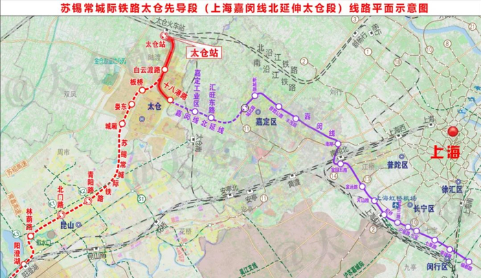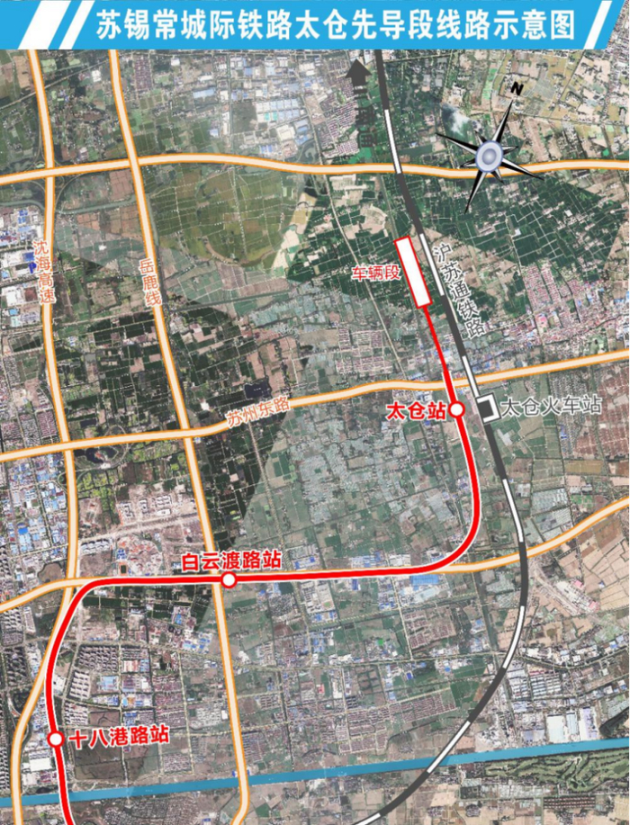 项目概况:根据现有方案,工程线路主要沿规划娄江新城站前大道、江南路,以及十八港河西侧布设。线路自太仓地下站引出,向南至江南路段、江南路向西至十八港路段,采用地下敷设工艺施工;下穿十八港路后出地面向南至省界段,采用高架敷设工艺施工。线路全长 10.3km,由太仓站引出,沿站前大道-江南路-兴业路,走行至省界与上海市域铁路嘉闵线北延嘉定段在省界衔接,在太仓境内设太仓站、白云渡路站、十八港路站共 3 个站及一个车辆段。