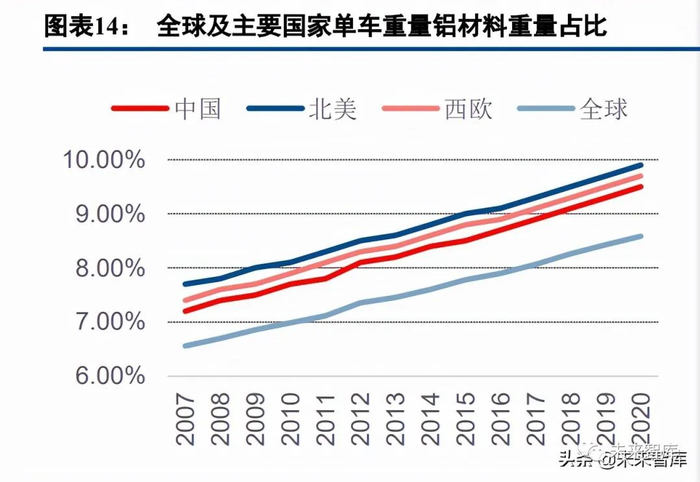 2.1 铝合金具备综合优势,单车用铝量提升显著