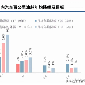燃油乘用车整体降耗目标不断提升,新能源汽车助力节能减排潜力显著。按照 2020 年 10月正式发布的《节能与新能源汽车技术路线图 2.0》规划,2020-2035年我国乘用车百公里油耗年均降幅逐步提高,减排压力逐年 增加。然而依据国家部委发布的 2016-2019 年度《中国乘用车企业平均燃料消耗量与新能源汽车积分核算情况 表》,可计算得到 2016-2019年传统能源乘用车新车实际平均百公里油耗分别为 6.88L、6.77L、6.62L 及 6.46L, 始终高于达标油耗 6.7L、6.4L、6L、5.5L。但受新能源汽车销量持续提升影响,乘用车总体新车平均百公里油耗低于达标值,且拉动幅度越来越大。由此可见,新能源汽车具有较大节能减排潜力,随着新能源汽车渗透率的逐步提高,可以进一步缓解汽车行业的节能减排压力。