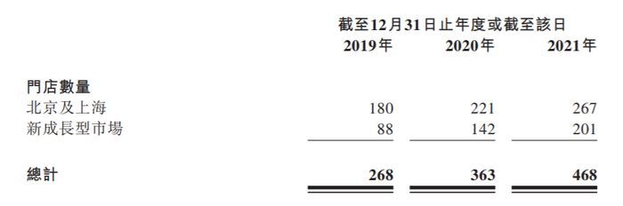 借鉴已在国外成形的经验,达美乐中国的门店经营模式具有高度复制性。从2019年1月1日至2021年12月31日,达美乐中国门店数从188家增至468家,复合年增长率为35.53%。其中,截至2021年12月31日,约57%的门店位于北京和上海。而在此之前,达美乐品牌进入中国已有20多年,这期间的开店数量增长甚至赶不上最后三年。