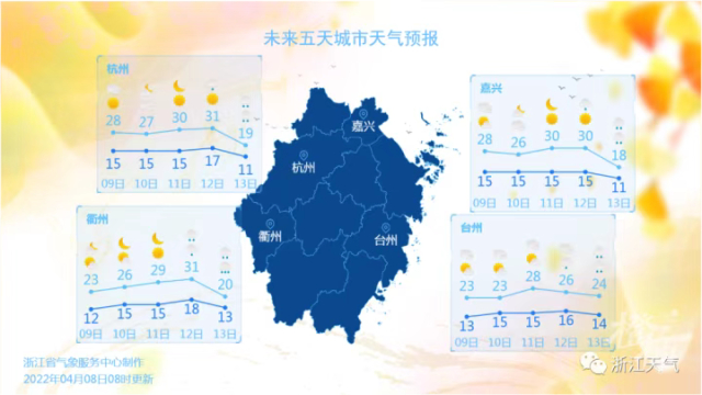 昨天,骄阳似火,杭州最高气温轻松超过30℃。今天(4月9日),杭州晴到多云,气温依旧高歌猛进。