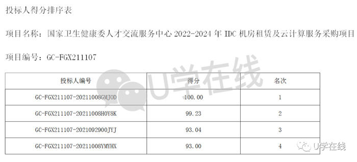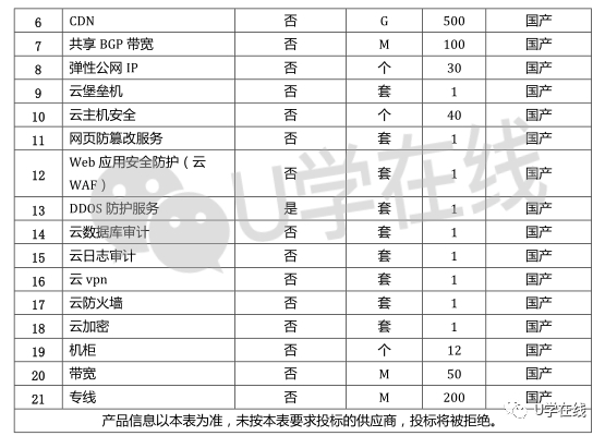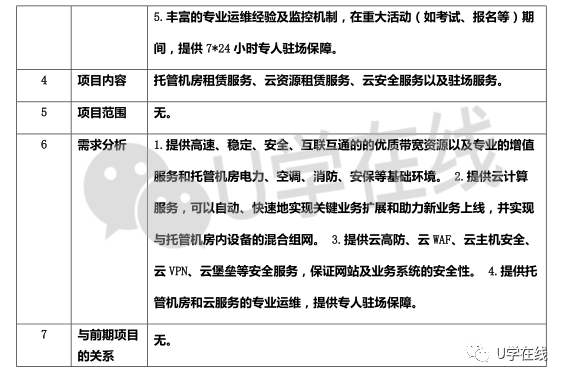 更多项目详情可关注U学在线公众号并回复:0409,获取招标文件。