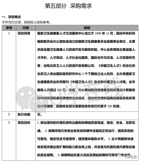 二、项目名称:国家卫生健康委人才交流服务中心2022-2024年IDC机房租赁及云计算服务采购项目