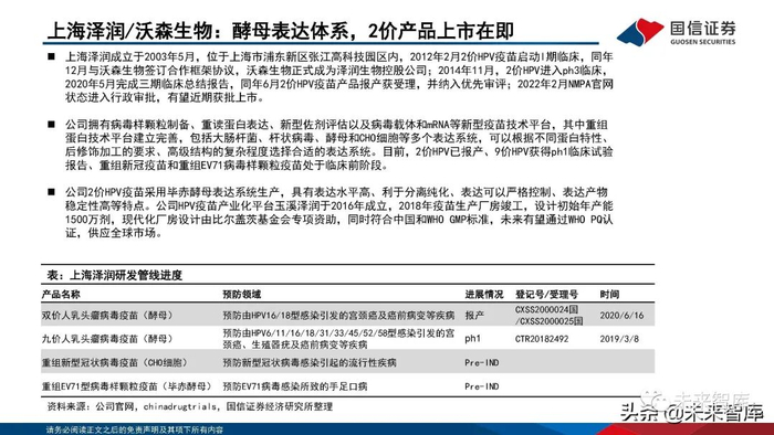 上海泽润/沃森生物:酵母表达体系,2价产品上市在即