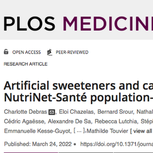 1、Artificial sweeteners and cancer risk: Results from the NutriNet-Santé population-based cohort study,plos medicine