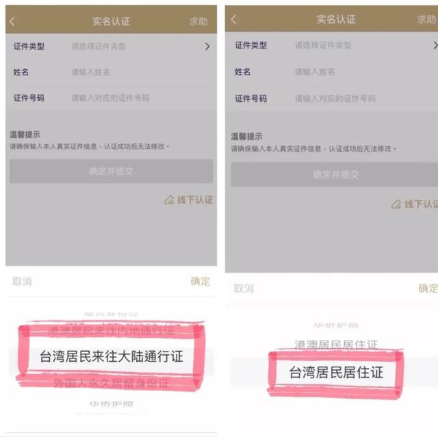 使用同一手机号码,同时注册台胞证或台湾居民居住证账户,可能导致系统异常,建议一个手机号码只绑定一张证件。