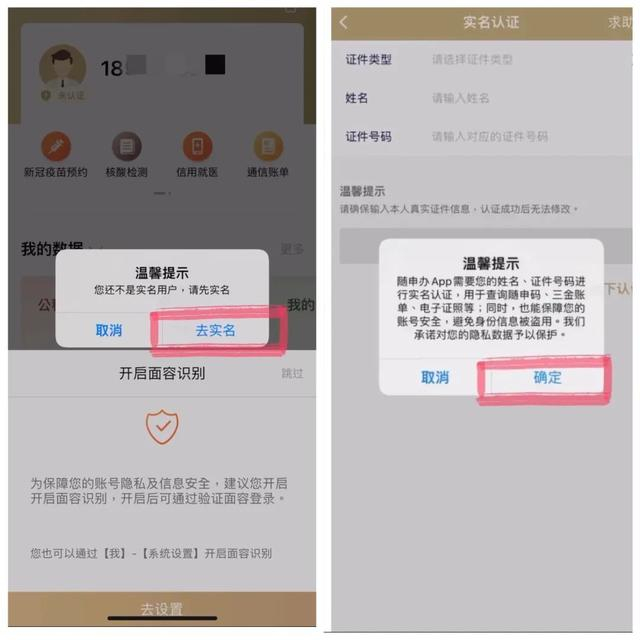 步骤五、根据提示,进行实名认证