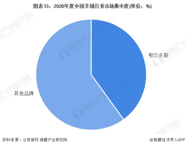 从行业市场份额来看,鄂尔多斯毫无疑问是我国最大的羊绒制品生产企业,其羊绒制品年产销能力超过1000万件,占我国羊绒制品行业40%左右的份额,占全球近30%的市场分额。