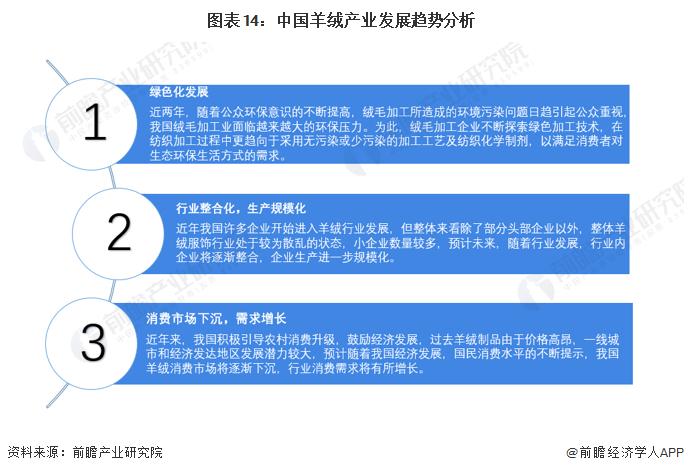 供给端绒毛加工所造成的环境污染问题日趋引起公众重视,我国绒毛加工业面临越来越大的环保压力。为此,绒毛加工企业不断探索绿色加工技术,在纺织加工过程中更趋向于采用无污染或少污染的加工工艺及纺织化学制剂,以满足消费者对生态环保生活方式的需求。品牌和产业发展方面,行业发展也将进一步整合,企业生产将进一步规模化。