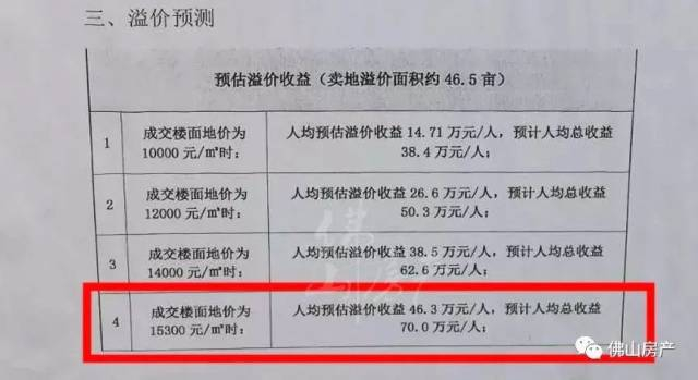 若达到最高价1.53万/㎡,预测分红可达70万/人。▲