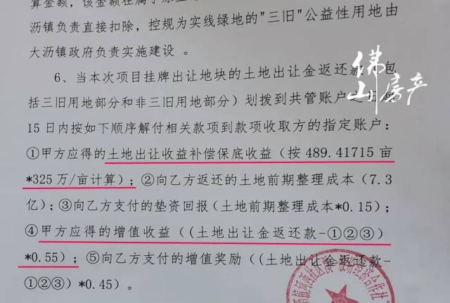该地块的前期整理,由佛山市恒淳泰置业有限公司于2018年以“成交价增值奖励比例的30%”竞得。