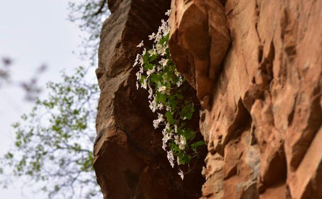这是一见难忘的明星物种,花期正在三四月,绝美,又竟只生长于垂直峭壁之上。去看它不能算是“赏”,更应叫做“寻”,循着崖壁一路边走边抬头搜寻,终于仰望到了岩缝中的几簇洁白,心都要跟着颤一下。槭叶铁线莲极为稀有,是国家二级、北京市一级保护植物,需要所有人的保护,绝不能因为它的美而起了占有之心。(李妍)