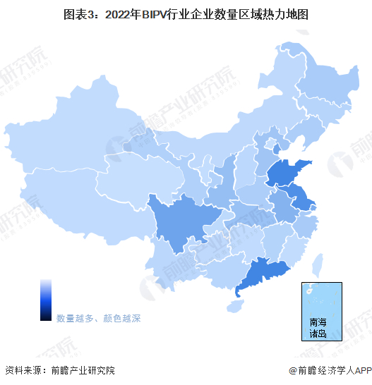 我国BIPV行业规模仍然较小,龙头企业分布多与光伏企业以及政策分布挂钩,因此,深圳、浙江、江苏、山东等地区BIPV企业众多,其中,深圳地区的BIPV企业数量最为出众。