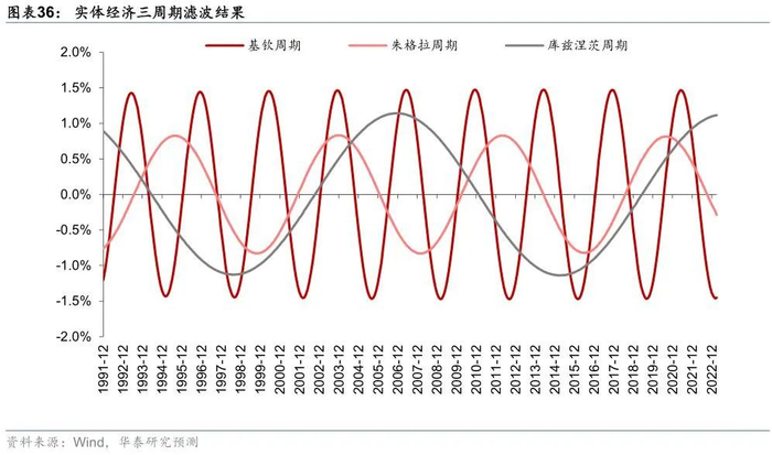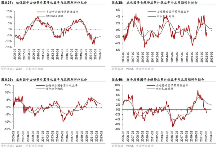 因子周期视角将华泰金工经济周期研究成果应用于风格因子表现预测。预测分为两部分:自上而下构建经济系统周期运行状态与因子表现对应关系的“因子投资时钟”,根据当前周期状态预测因子未来表现的整体趋势;自下而上对风格因子去趋势累计收益率进行三周期回归拟合,外推因子未来表现的边际变化。与前述内生变量、外生变量视角不同,因子周期视角侧重于对因子中长期表现的预测。