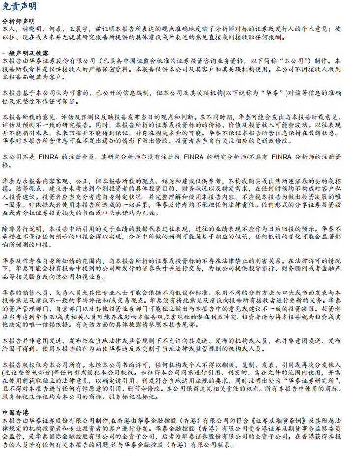 本公众平台不是华泰证券研究所官方订阅平台。相关观点或信息请以华泰证券官方公众平台为准。根据《证券期货投资者适当性管理办法》的相关要求,本公众号内容仅面向华泰证券客户中的专业投资者,请勿对本公众号内容进行任何形式的转发。若您并非华泰证券客户中的专业投资者,请取消关注本公众号,不再订阅、接收或使用本公众号中的内容。因本公众号难以设置访问权限,若给您造成不便,烦请谅解!本公众号旨在沟通研究信息,交流研究经验,华泰证券不因任何订阅本公众号的行为而将订阅者视为华泰证券的客户。