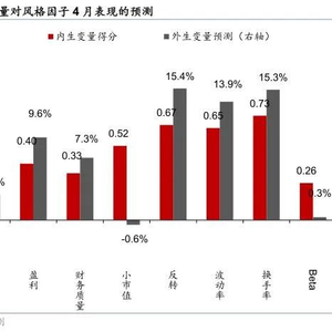 另外,小市值因子的外生变量预测值为-0.6%,4月因子表现可能不佳;Beta因子Rank IC本期预测值为0.3%,预期表现相对平庸。