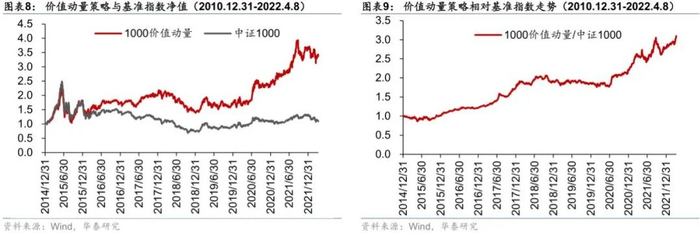 整体来看,上述估值与动量因子结合的策略拥有收益与回撤控制的双重优势,表现出相对较好的稳定性,同时对于不同市值风格的股票池也具有较好的适应性。在价值风格整体走强的场合下,该策略可以提供一定的参考价值。