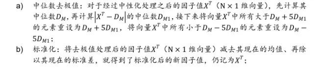 1. 因子原始值计算:设第T期指定股票池(全A股)内共存在N只股票,首先根据附录一表格计算细分因子EP、BP、SP、股息率在第T期的值,均为N×1维向量;