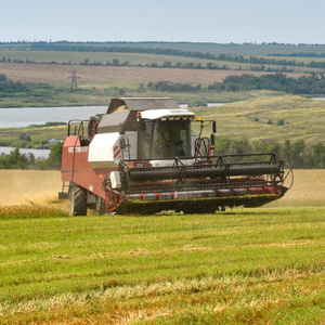 当地时间2021年7月29日,乌克兰顿涅茨克地区,一台联合收割机在田地里收割小麦。图/IC photo