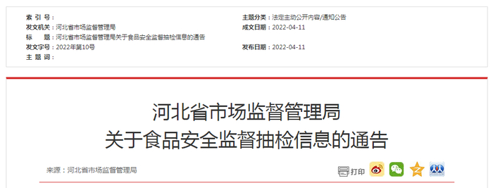 河北省市场监督管理局已责成相关设区市市场监督管理部门按照有关法律法规规定,对本次监督抽检不合格食品及相关单位依法处理。如发现食品安全违法行为,请拨打热线“12315”进行投诉或举报。