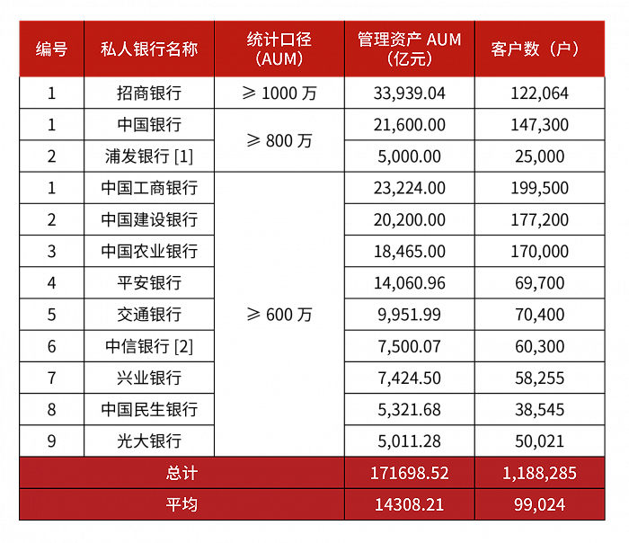 表1 中国十二大私人银行2021年管理资产规模(AUM)及客户数情况
