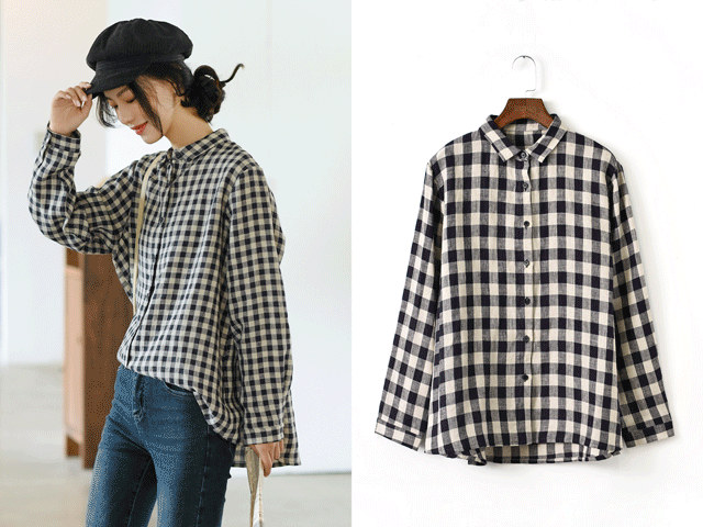 亚麻法式格纹衬衫,干爽舒适,复古文艺,好搭不挑人。
