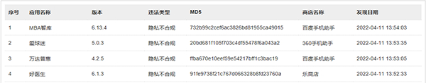 中国网财经4月11日讯(记者 杜丁)今日,国家移动互联网应用安全管理中心网站“违规曝光”显示,好医生(版本6.1.3,乐商店)等16款App未向用户明示申请的全部隐私权限,涉嫌隐私不合规。