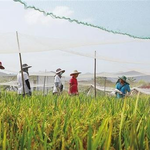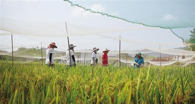 海水稻科研人员在位于海南省三亚国家南繁科研育种基地水稻田选种。这些来自青岛海水稻研究发展中心的科研人员,扎根在海南三亚国家南繁科研育种基地试验田,选育着近2000份水稻种质资源。海南一年四季均可开展水稻试验研究,育种进程加速,科研时间能缩短一半。张 茂摄(中经视觉)