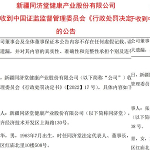 停牌!处罚!*ST济堂三年虚增营收207亿!收到行政处罚决定书及市场禁入决定书