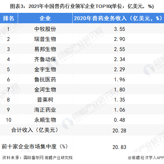 2、中国兽药行业企业排名