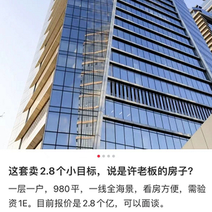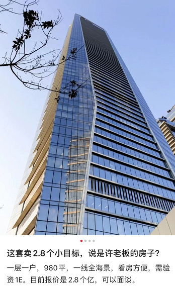 从3月末房产中介发布的消息来看,许老板打算出售的豪宅位于深圳湾1号,市价4亿,着急出售打了个良心折扣,只要2.8亿。