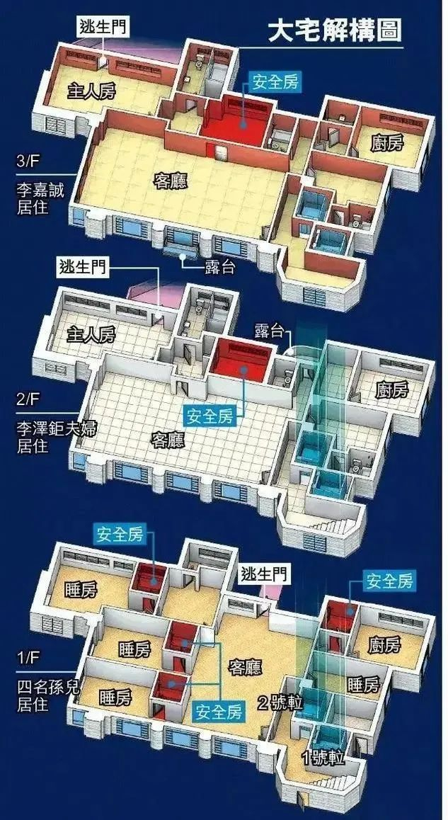 李家大宅于2013年完工,据说香港地区很多大佬的豪宅都以李家为模板,升级了自家的“避难所”。