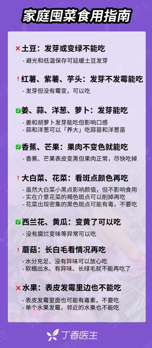 最近很多人囤了不少蔬菜水果,但放久了打开一看,可能有了些微妙的变化:土豆发芽了、香蕉芒果变黑了、蘑菇长毛了……这时,生活的经验告诉我们这些变化要小心谨慎,但节俭的美德又让人不舍得扔掉。