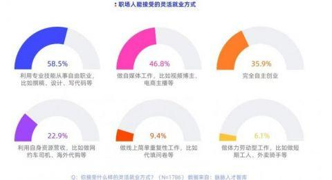 远程办公也逐渐成为一种常见的工作状态。《报告》统计,有超八成职场人支持远程办公。灵活的办公方式也为职场人带来了新的就业观念。脉脉数据显示,过半职场人想要在工作之外利用专业技能“赚外快”。