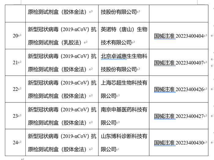 国内已经有超过20款新冠抗原检测试剂盒获批