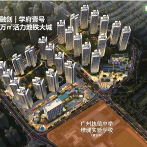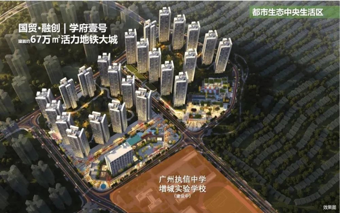 国贸融创学府壹号位于增城大道三联路段北侧,北面是蔷薇国际,南侧执信中学增城实验学校(初中部)。占地约14万平,建筑面积约67万平,总户数约4500户,容积率为3.6,绿化率为30%,配有15个班的幼儿园。