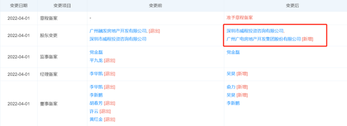 根据工商资料显示,融创已将其持有的广州创行房地产开发有限公司50%股权,转让给广州本地国企广电地产。广电地产全名为广州广电房地产开发集团股份有限公司,所属公司为广州无线电集团。