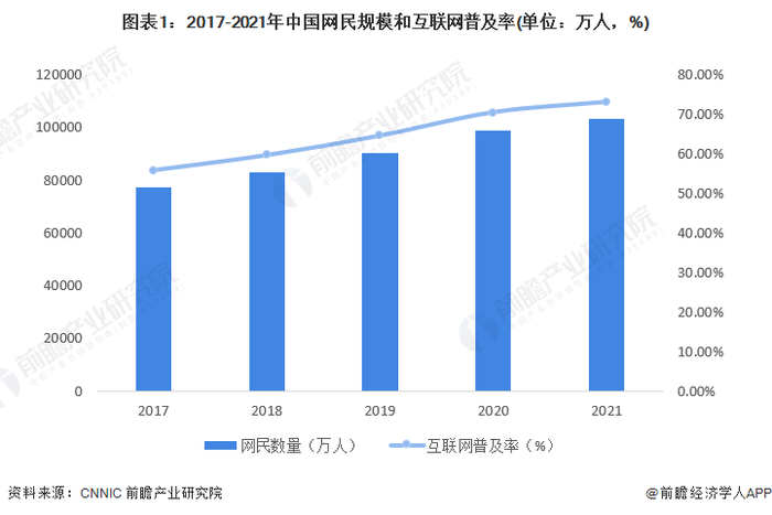 互联网的出现缩短了全球信息传输的时间,大大便捷了普通民众的日常生活和工作。我国网民数量也快速增长,互联网普及率不断提高,截至2021年12月,我国网民规模为10.32亿,较2020年12月新增网民4296万,互联网普及率达73.0%,较2020年12月提升2.6个百分点。