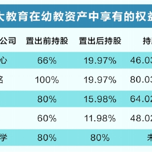 从转移之后幼教资产的权益归属来看,未体现出韩雨佳个人获得了权益份额。不过,天风系在幼教资产中的权益份额,从此前通过颂大教育持股10.63%,变成了在武汉华大天童持股15.91%。这意味着,权益受损的是徐春林及颂大教育的其他中小股东。