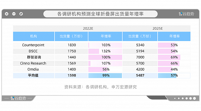 综合多个机构的数据预测,2022年折叠屏手机的出货量将在1600万台左右,较上一年直接翻倍。