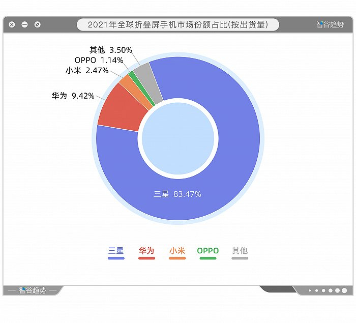 到2021年结束时,三星已经独占83.47%的折叠屏手机市场。