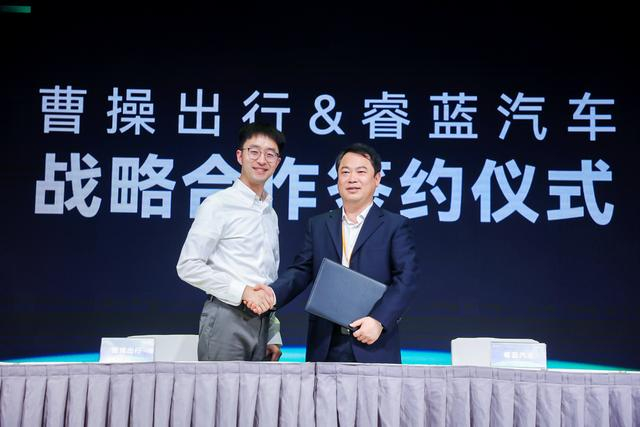除了发布两条产品线外,发布会上,曹操出行还与重庆睿蓝汽车科技有限公司(以下简称“睿蓝汽车”)举行了战略合作签约仪式。